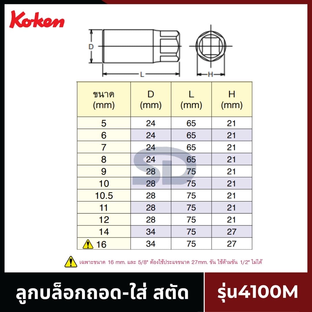ลูกบล็อกถอดใส่-สตัด รู 1/2” (4หุน) KOKEN รุ่น 4100