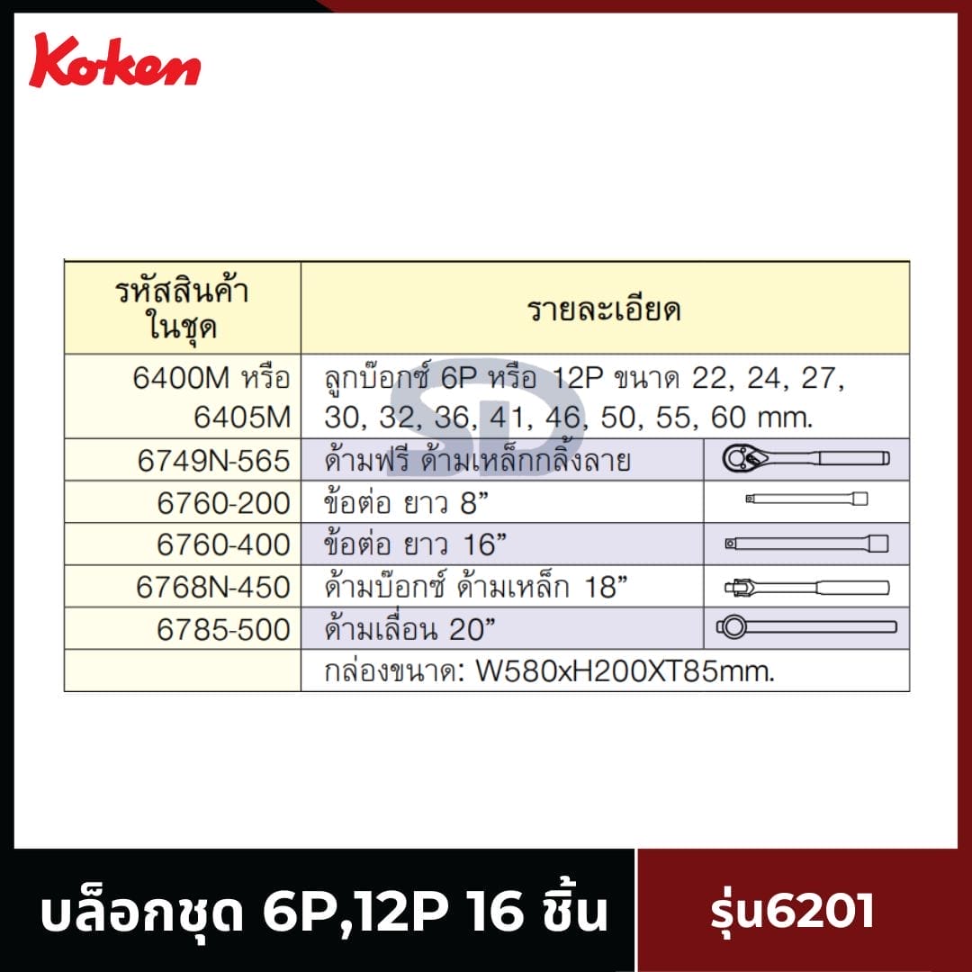 ชุดบล็อก ขนาด 3/4″ (6หุน) KOKEN รุ่น 6201